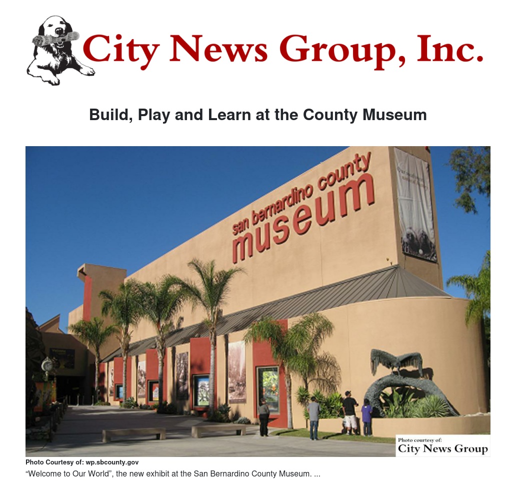 A special Family Fun Day, “Build, Play, Learn,” at the County Museum on Saturday, Oct. 24 from noon to 4 p.m. will celebrate the opening of a new exhibit, “Welcome to Our World.”