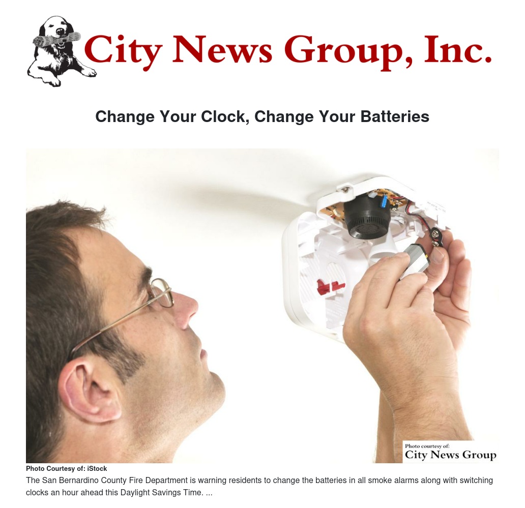 The San Bernardino County Fire Department is reminding residents that not only is it time to change clocks, but it's also time to change batteries.