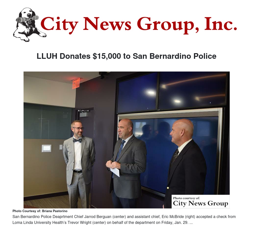 “In light of the San Bernardino terrorist attack,” said Trevor Wright, COO, LLUMC, “we want to do our part to ensure the safety of those who selflessly put their lives on the line for us every day. We are honored to help the San Bernardino Police Department, and we want to do whatever we can to strengthen our partnership in providing care and protection for our community.”