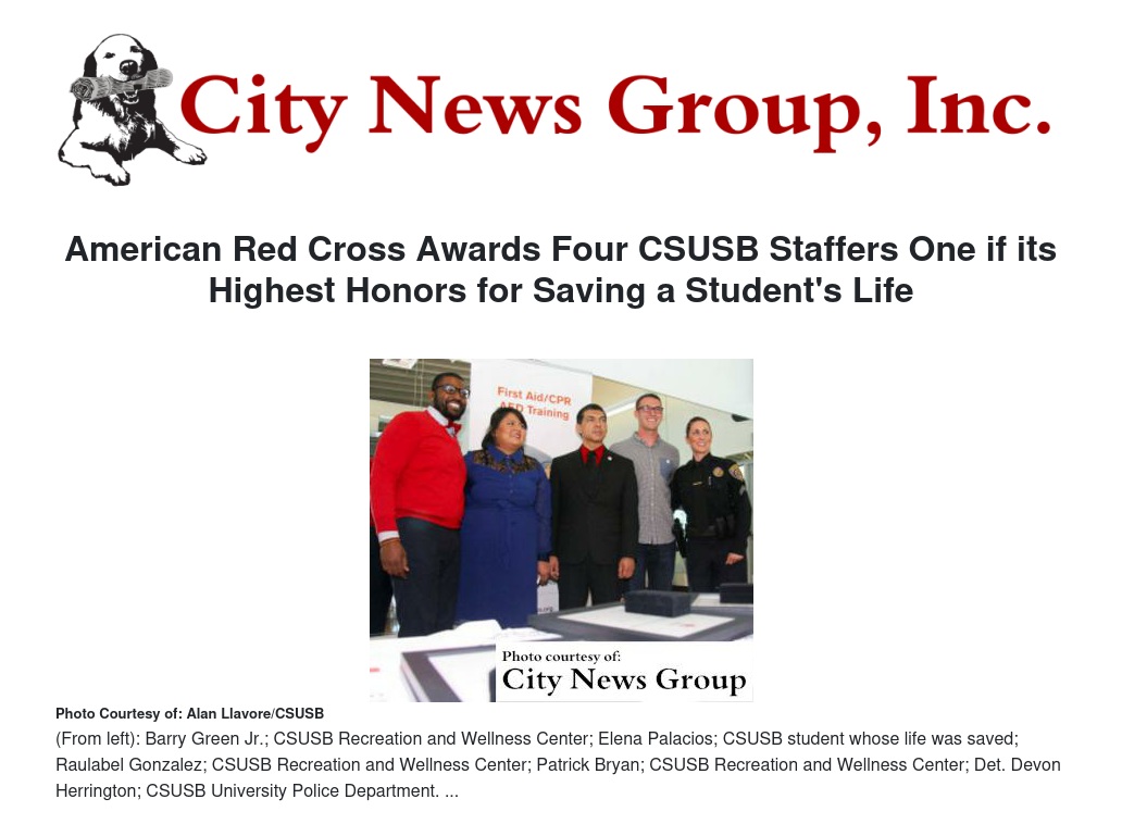 American Red Cross Awards Four CSUSB Staffers One if its Highest Honors for Saving a Student's Life