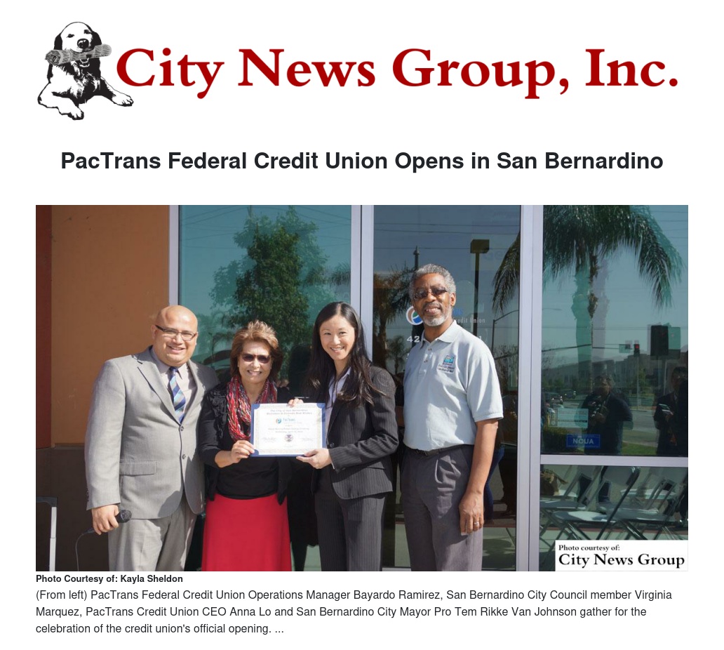 PacTrans Federal Credit Union at 444 South Waterman Avenue was welcomed with open arms to San Bernardino on Wednesday morning, April 15.