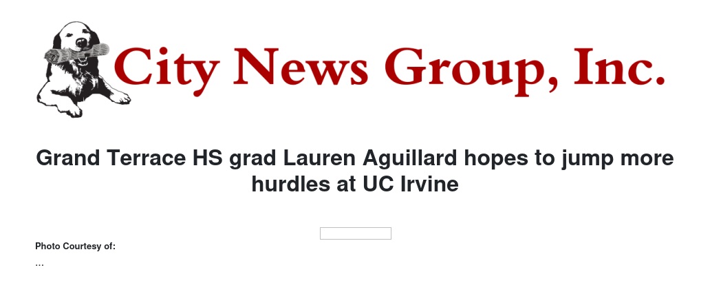 Grand Terrace HS grad Lauren Aguillard hopes to jump more hurdles at UC Irvine by Harvey Khan - City News Group, Inc.