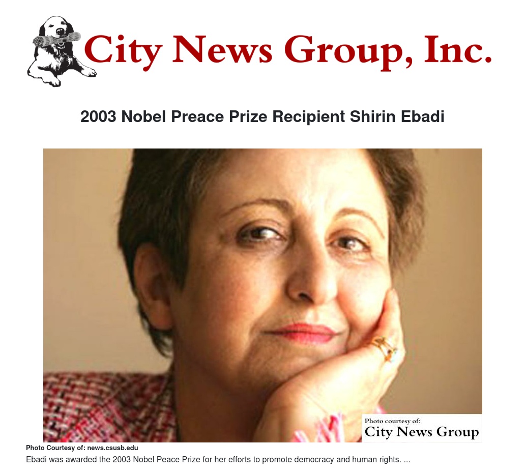 The 2003 Nobel Peace Prize recipient Shirin Ebadi, the first Muslim woman and first Iranian to receive the award, will discuss “Ways to Fight Islamic Fundamentalism” on Thursday, Oct. 22 during her lecture hosted by the Center for Islamic and Middle Eastern Studies at California State University, San Bernardino.