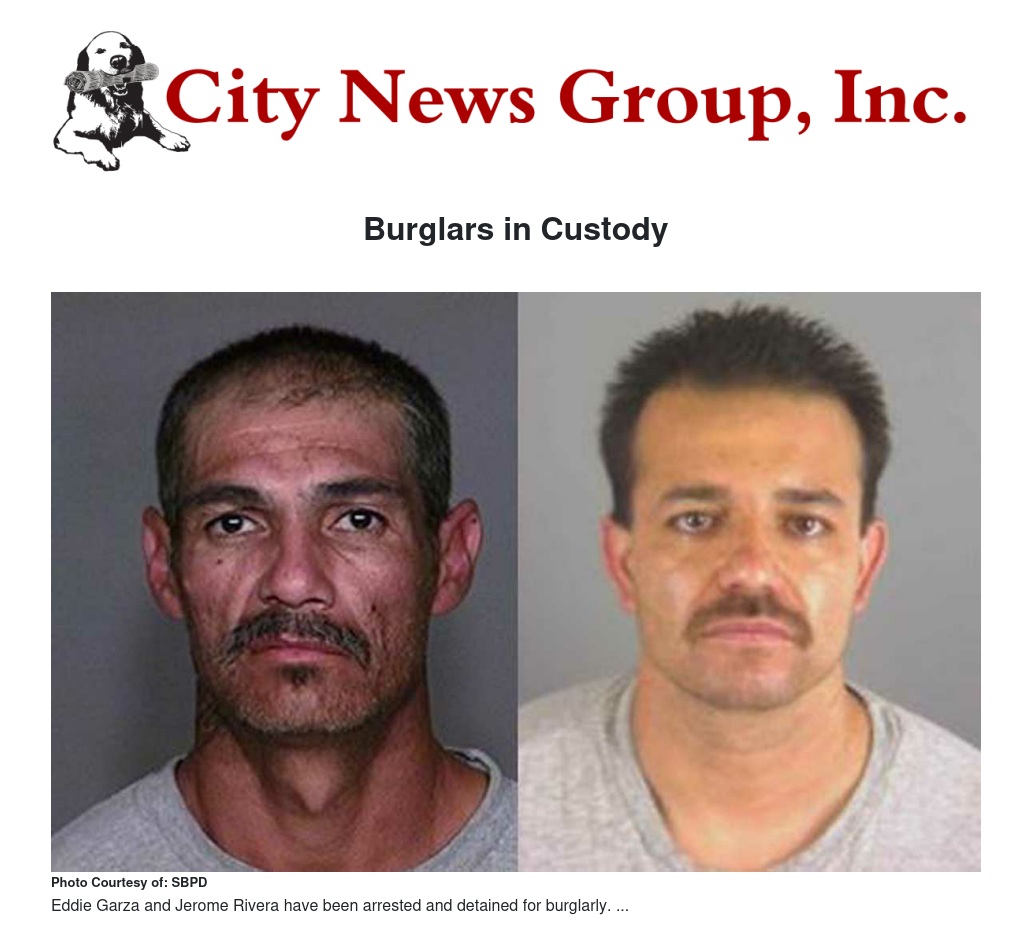 Approximately 1 ½ hours later SBPD received an alarm call at Aaron’s Sales and Lease. Suspects forced entry into the closed business through the electrical room and attempted to gain entry into the main show room but were unsuccessful. A short time later SBPD received a call of a suspicious white SUV to the rear of 2084 E. Highland Ave with two occupants. SBPD officers arrived and contacted Garza and Rivera. Video surveillance indicted both Garza and Rivera were involved in the burglaries at La Curacao and Aaron’s Sales and Lease. Both suspects were arrested and lodged at Central Detention Center.