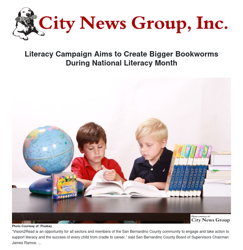 Vision2Read, a year-long campaign designed to help improve literacy throughout San Bernardino County by connecting people to literacy programs - whether they need help or are able to help - was endorsed by the Board of Supervisors recently as part of its recognition of National Literacy Month in September.
