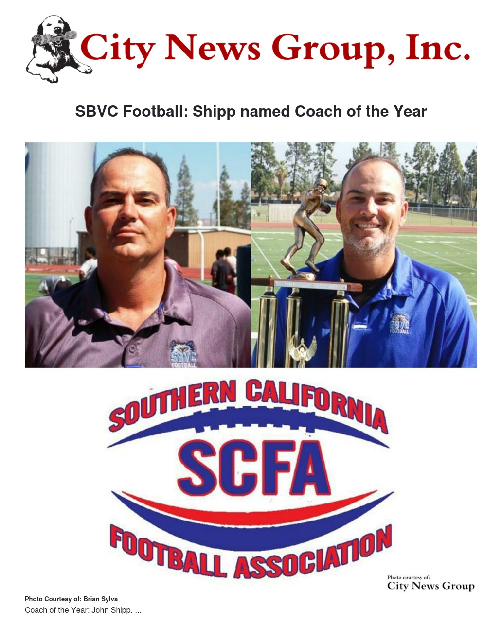 Under second-year coach John Shipp, SBVC finished with a record 9-2 overall and 6-1 in conference. As a reward for winning the American Division-Mountain Conference title and going to the Golden State Bowl, Coach Shipp was handed Coach of the Year honors.