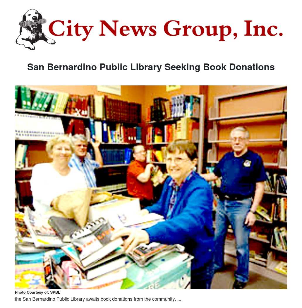 Donations may be brought to the main library at 555 W. Sixth Street in San Bernardino.