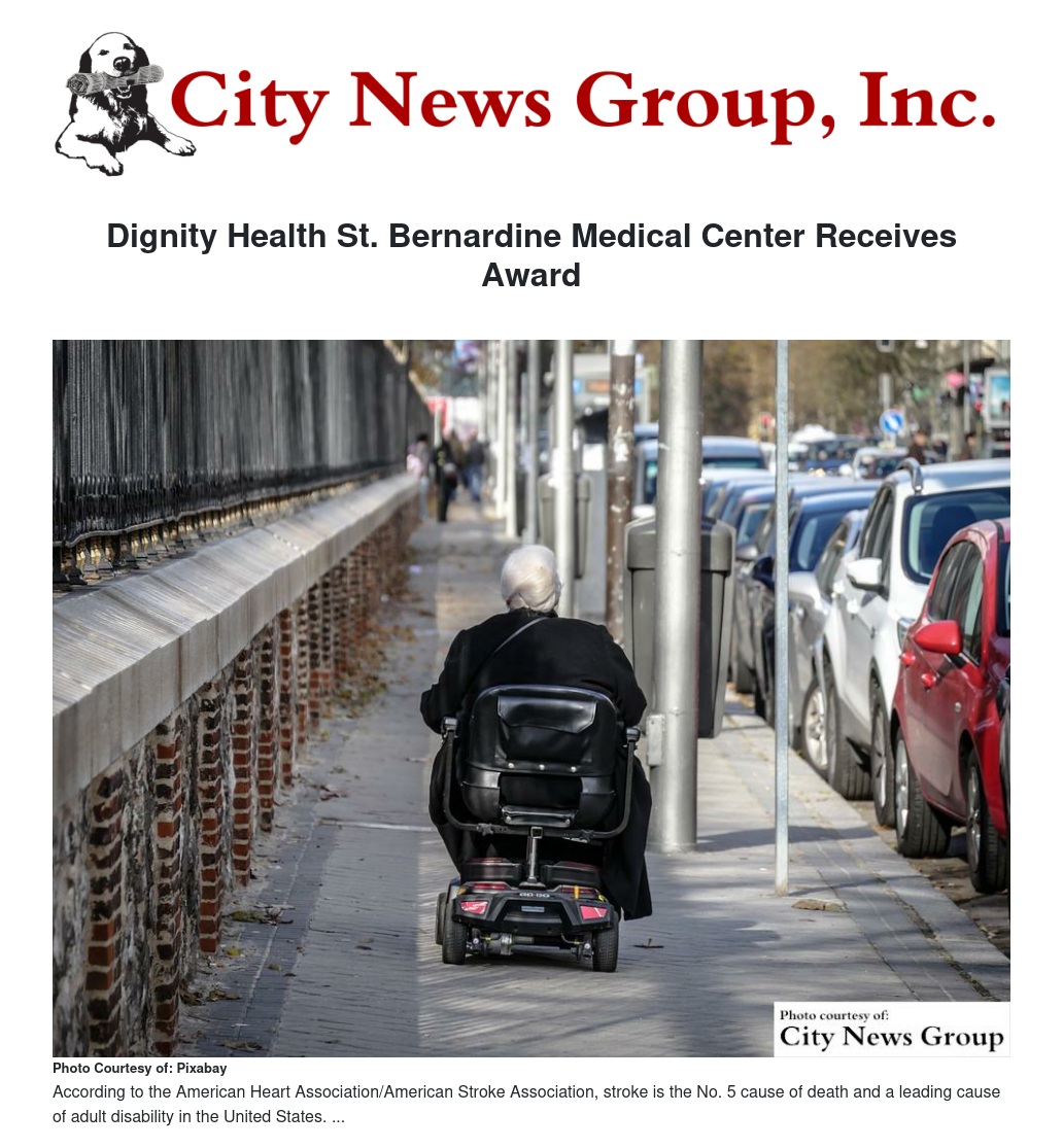 “This award is a testament to the hard work and commitment of our highly-skilled medical team,” states Julie Sprengel, SVP of Operations for Dignity Health Southern California. “St. Bernardine is dedicated to improving the quality of stroke care and the American Heart Association/American Stroke Associations’ Get With The Guidelines-Stroke helps us achieve that goal.”