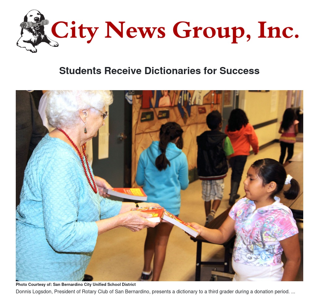 Each third grader in the San Bernardino City Unified School District will now be the owner of their own personal dictionary, donated from the Rotary Club of San Bernardino, in partnership with Stater Bros. Charities.
