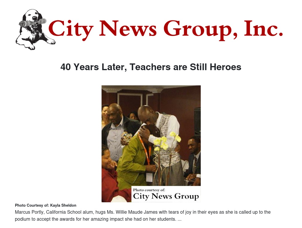 Honored educators included: George C. Brown, Andrew G. Brown, Ms. Gleda Moss Bridges, Mrs. Mildred L. Geiger, Dr. Mildred Dalton Hampton-Henry, Dr. Margaret B. Hill, Ms. Carolyn Martin, Ms. Victoria Rose Stringer, Ms. Carrie Swanson, Mrs. Mary Ann Vincent, and Mrs. Willie James.