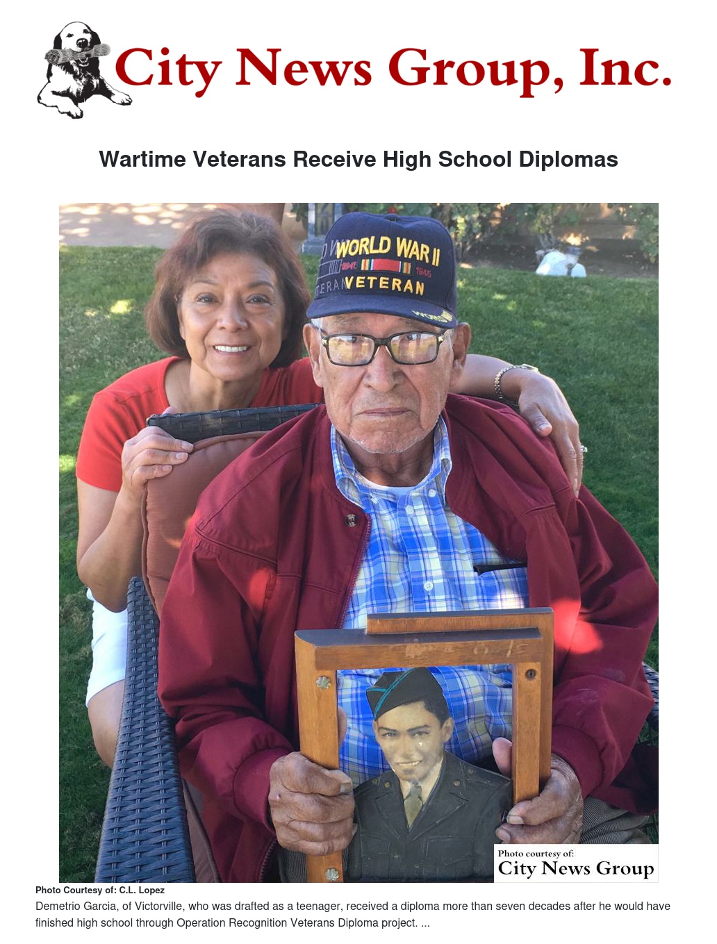 The program, a partnership between San Bernardino County Veterans Affairs and San Bernardino County Superintendent of Schools, honors veterans who did not graduate from high school due to wartime service during the Korean War, World War II or the Vietnam War.