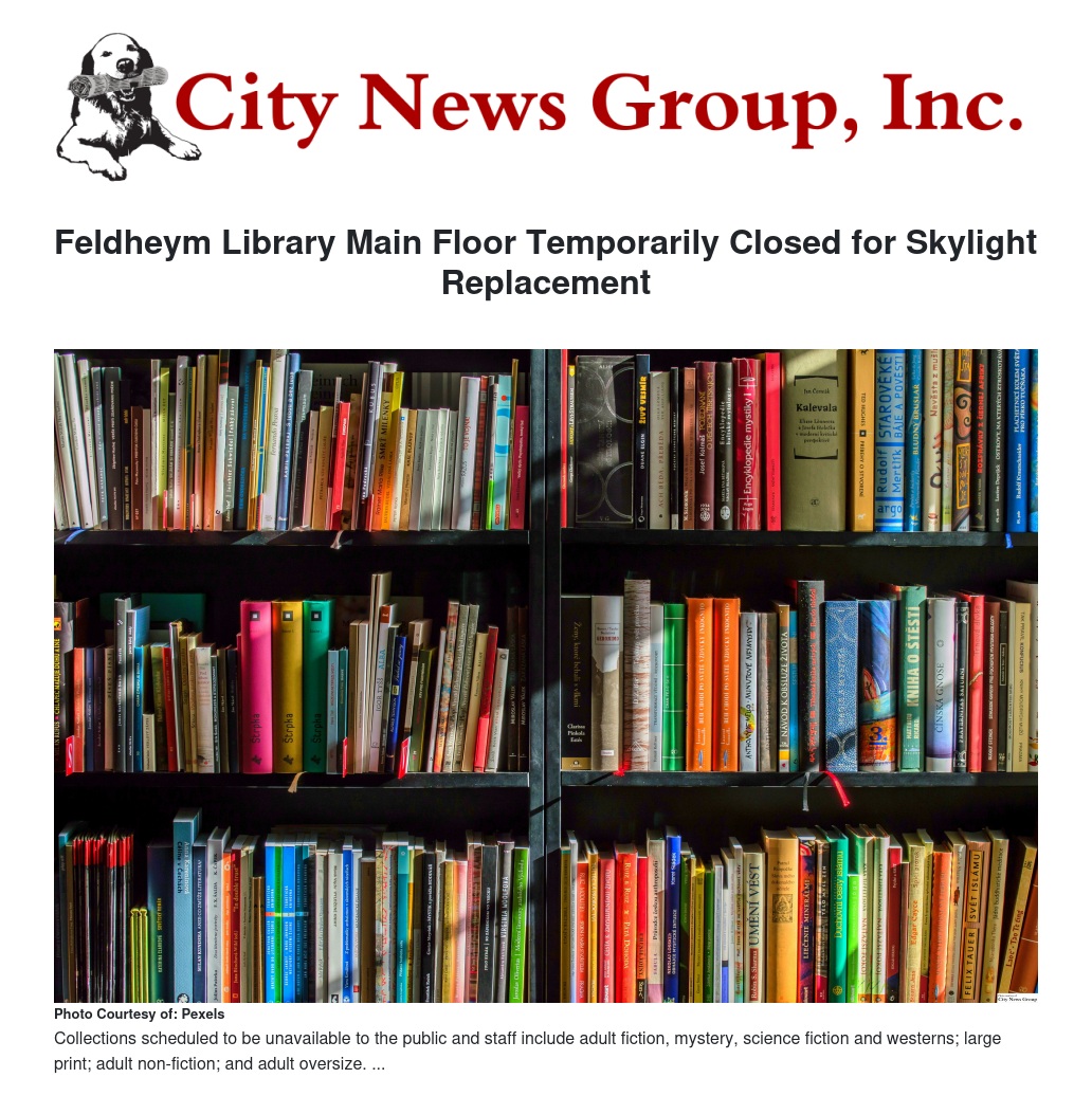 Feldheym Library Main Floor Temporarily Closed for Skylight Replacement