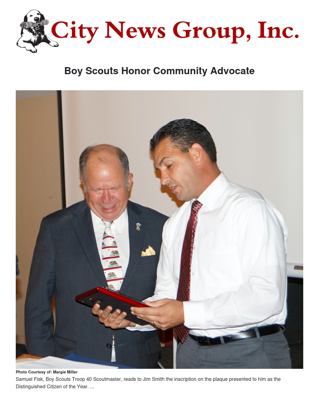 Last Thursday, San Bernardino resident Jim Smith accepted the honor of being named 2014’s Distinguished Citizen of the Year, presented by the Boy Scouts of America’s Arrowhead District.