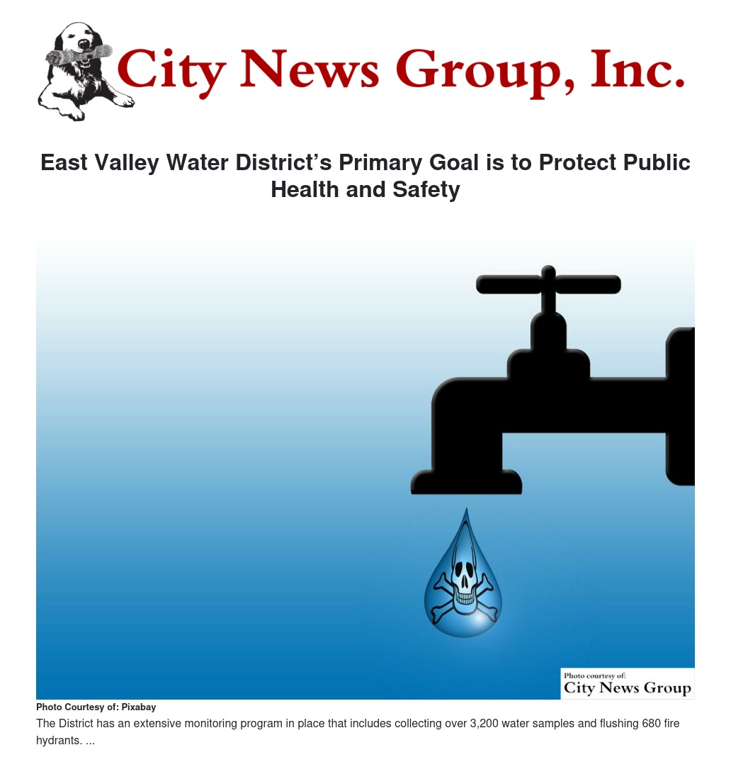 East Valley Water District’s Primary Goal is to Protect Public Health and Safety