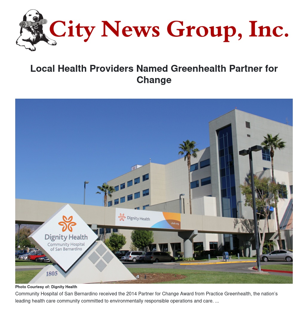 Community Hospital of San Bernardino and St. Bernardine Medical Center, members of Dignity Health, were each awarded the 2014 “Partner for Change Award” by Practice Greenhealth, the nation’s leading health care community committed to environmentally responsible operations and care.