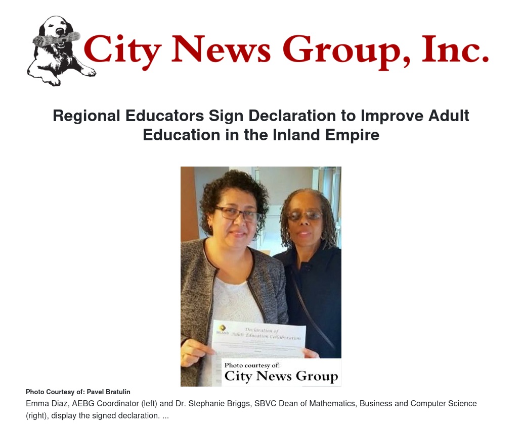 “I am excited about the signing of this declaration,” said Emma Diaz, San Bernardino Valley College’s AEBG Coordinator. “It reflects the commitment our regional leadership has in working together to empower change in our community.”