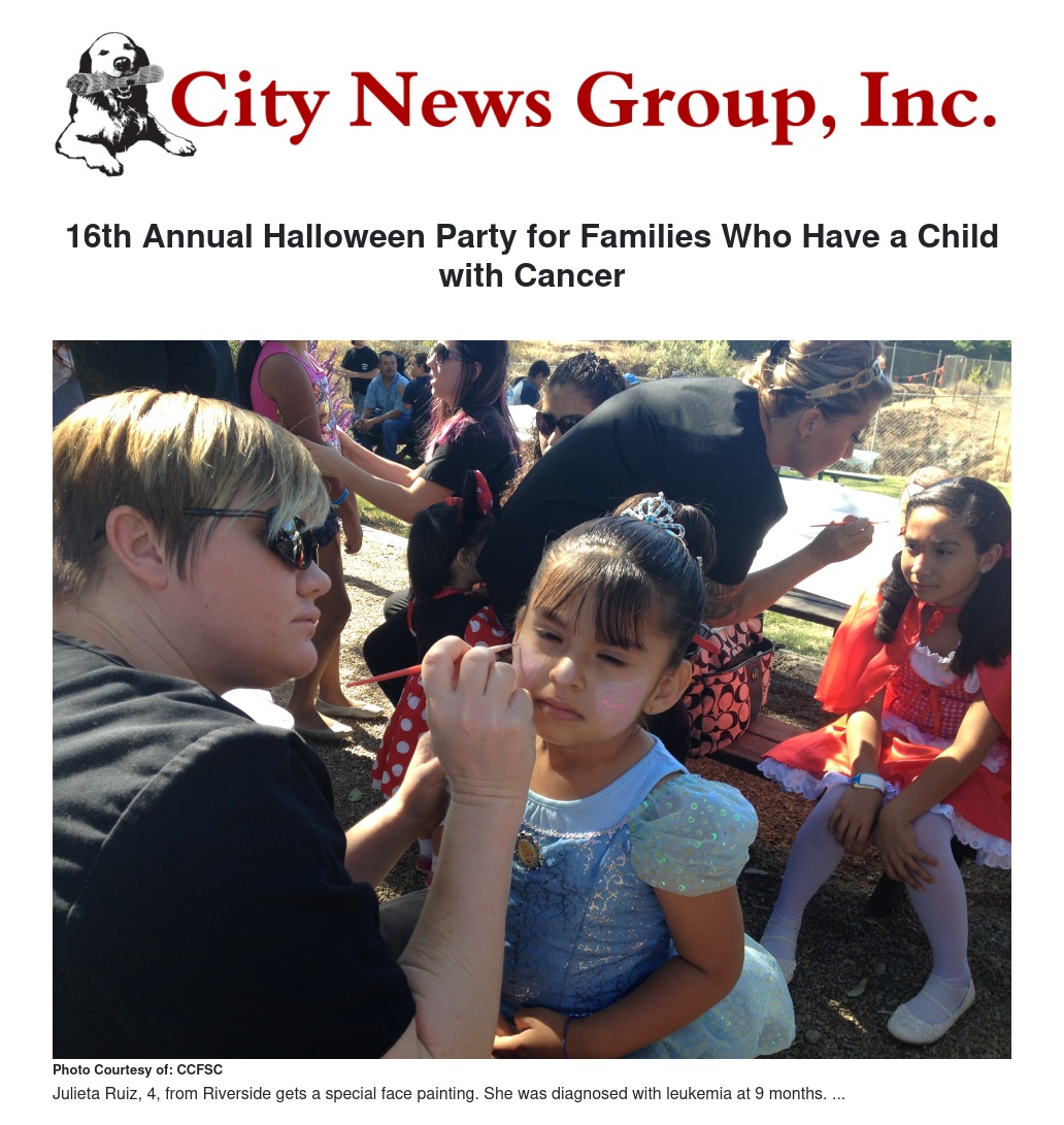 Every Fall Childhood Cancer Foundation of Southern California (CCFSC) invites children with cancer to join them for their Annual Halloween Party. This year Greenspot Farms in Mentone will welcome the group of over 200 registered guests to enjoy an afternoon of family fun from 10 a.m. to noon.