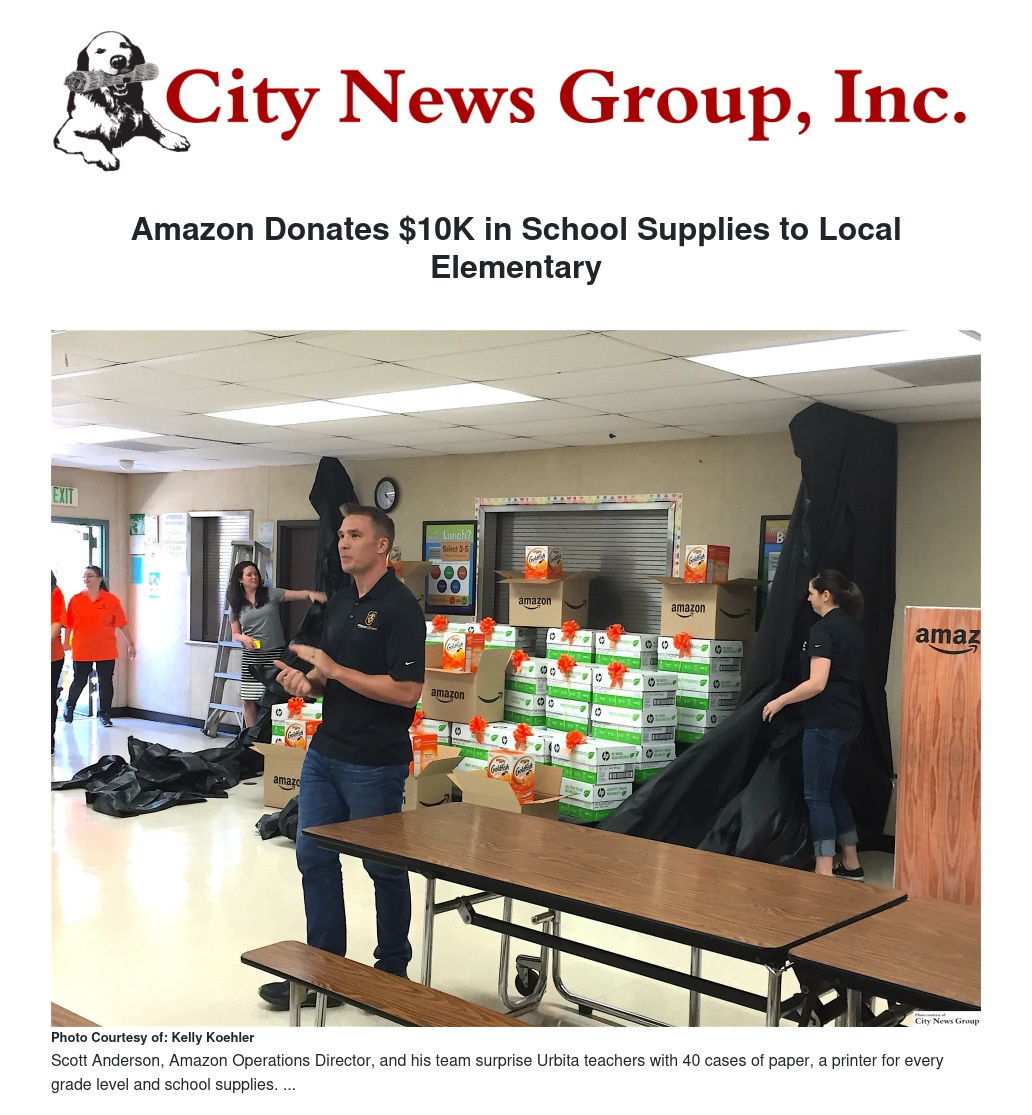 “Surprising my teachers with this generous gift from Amazon is the best way to kick off the new school year," said Keith Keiper, Urbita Elementary School Principal. "We are so grateful and look forward to a continued partnership with Amazon."