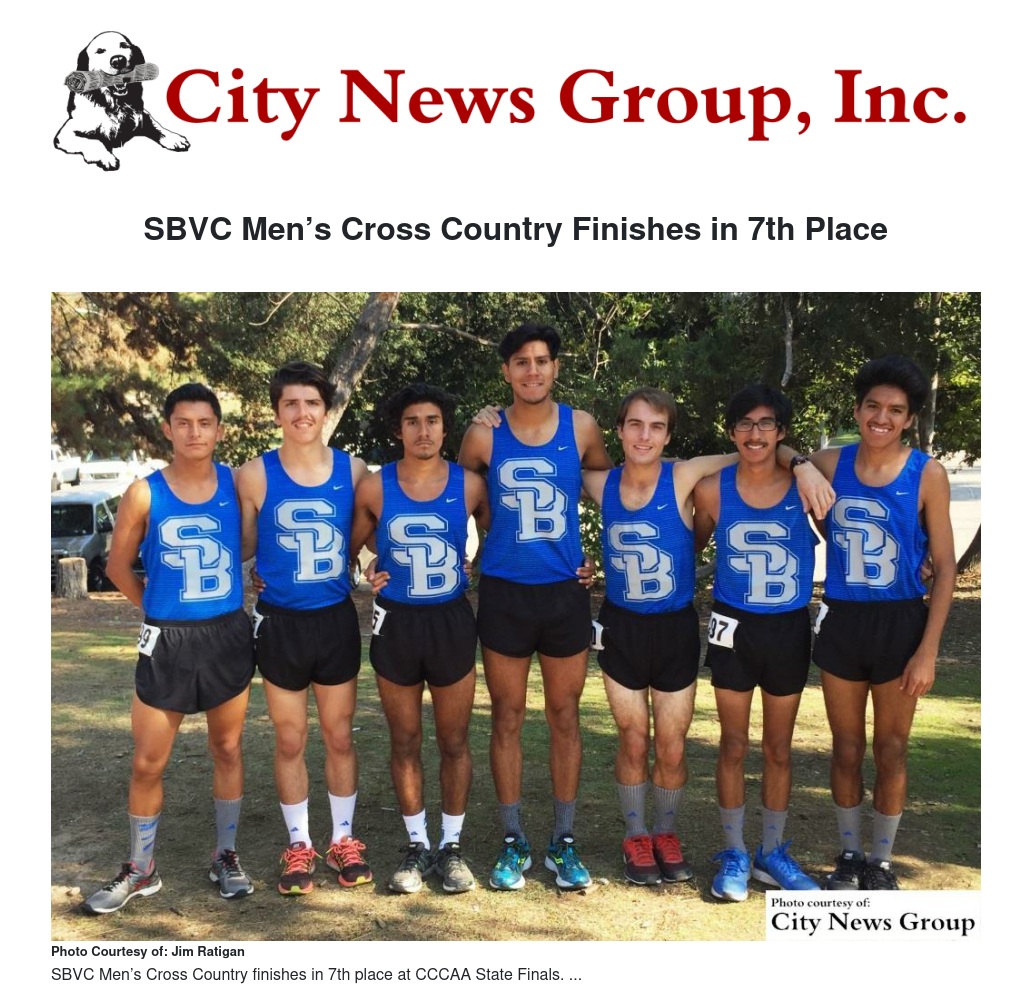 SBVC finished 31 points ahead of Cuyamaca, the top overall finisher at the SoCal Finals, freshman Michael Teran (Fontana Jurupa Hills), was a surprising 12th place finisher, with a time of 20:50.4 on the 4 mile course. The top finisher for SBVC at the State Finals was freshman Luis Ortega (Fontana Jurupa Hills), finishing 8th with a time of 20:44.2.