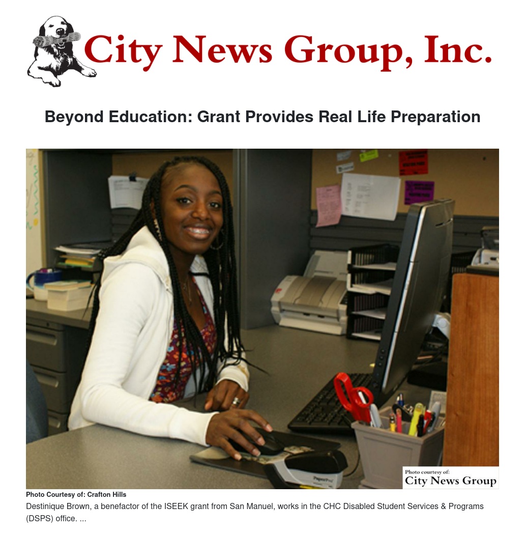 Brown and over 60 other CHC students are working part-time campus jobs after the college received a $100,000 Increasing Student Engagement, Employment & Knowledge (ISEEK) grant from the San Manuel Band of Mission Indians in August last year.