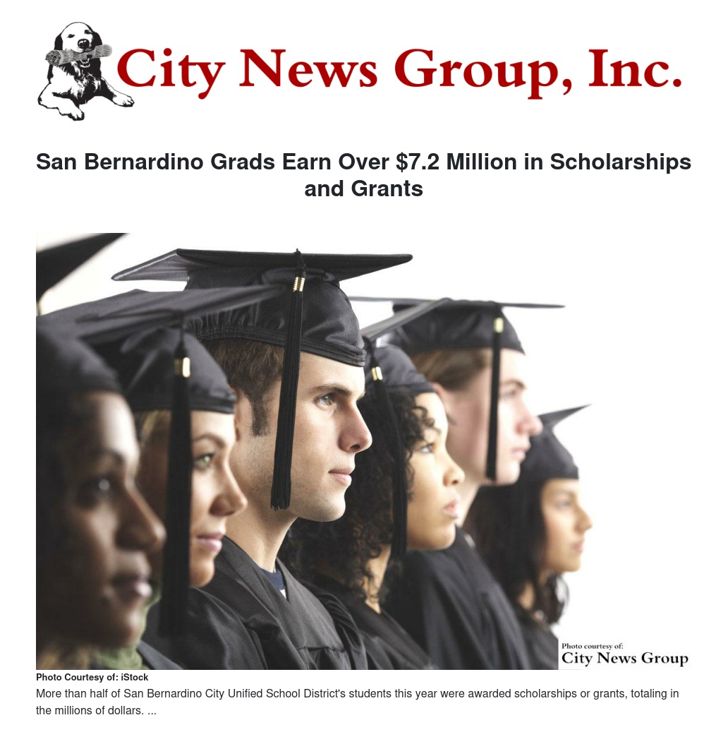 San Bernardino High School’s 368 graduates earned a total of $2,290,629 in college scholarships and grants, the most of any San Bernardino City Unified School District (SBCUSD) high school.