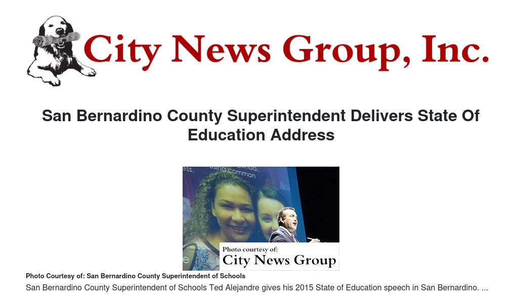 Making connections to benefit students and providing opportunities through countywide efforts to pull together as communities in support of educating their children were focal points of the inaugural State of Education Address delivered by San Bernardino County Superintendent Ted Alejandre on Sept. 16.