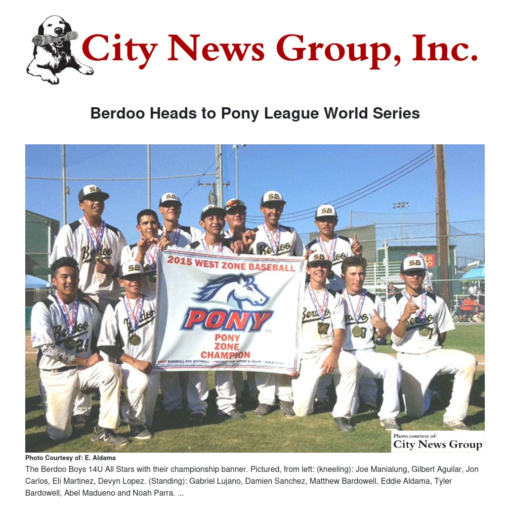 For the first time in 60 years, San Bernardino will be represented in the Pony League World Series. The San Bernardino Youth Baseball 14U All-Star team (“Berdoo”) won the Pony West Zone Championship in Los Alamitos.
