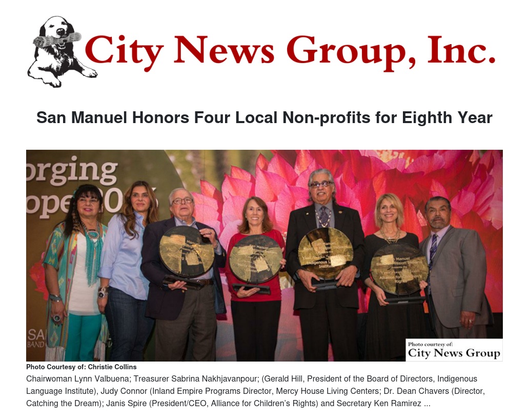 Four non-profit organizations who have demonstrated the essence of Yawa’ by making a significant difference in Southern California and across the nation were recognized at the eighth annual Yawa’ Awards: Forging Hope breakfast. San Manuel Band of Mission Indians welcomed Discovery Channel star, Ariel Tweto, to the Inland Empire as Mistress of Ceremonies to help the tribe honor the award recipients who have embodied the time-honored Serrano concept of Yawa’ – to act on one’s beliefs.