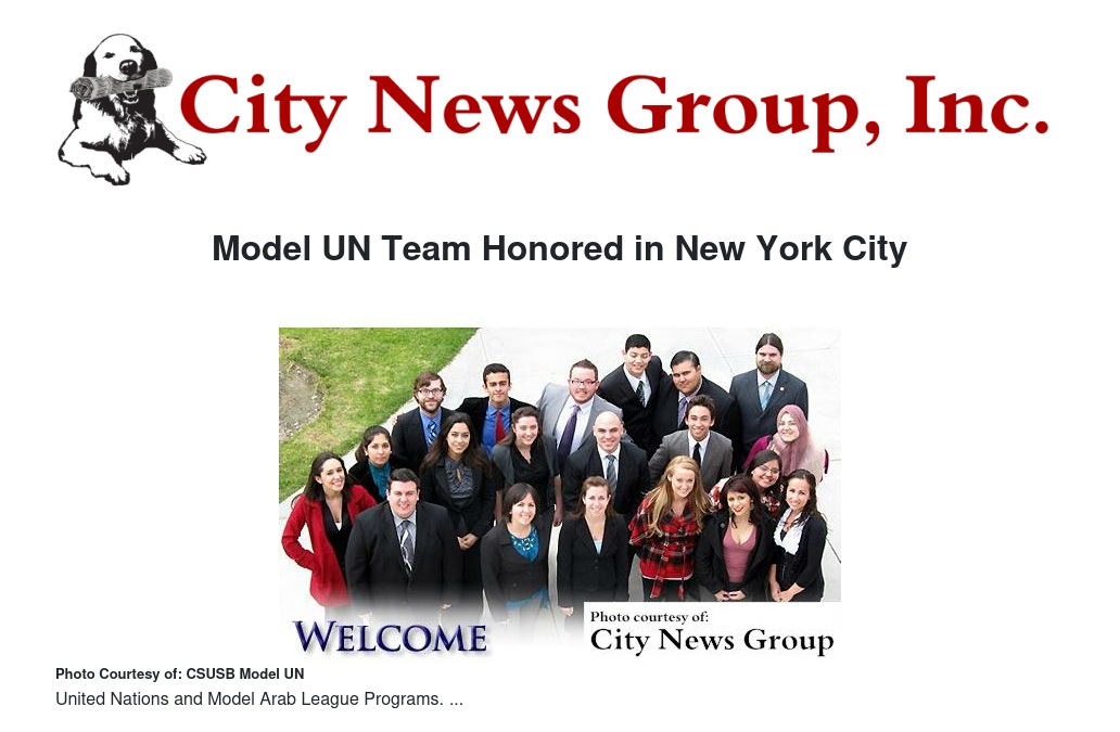 SAN BERNARDINO >> Cal State San Bernardino’s (CSUSB) Model United Nations team continued its tradition of excellence at the 2016 National Model United Nations Conference in New York City earlier this year, taking home a Distinguished Delegation award and four Outstanding Paper awards.