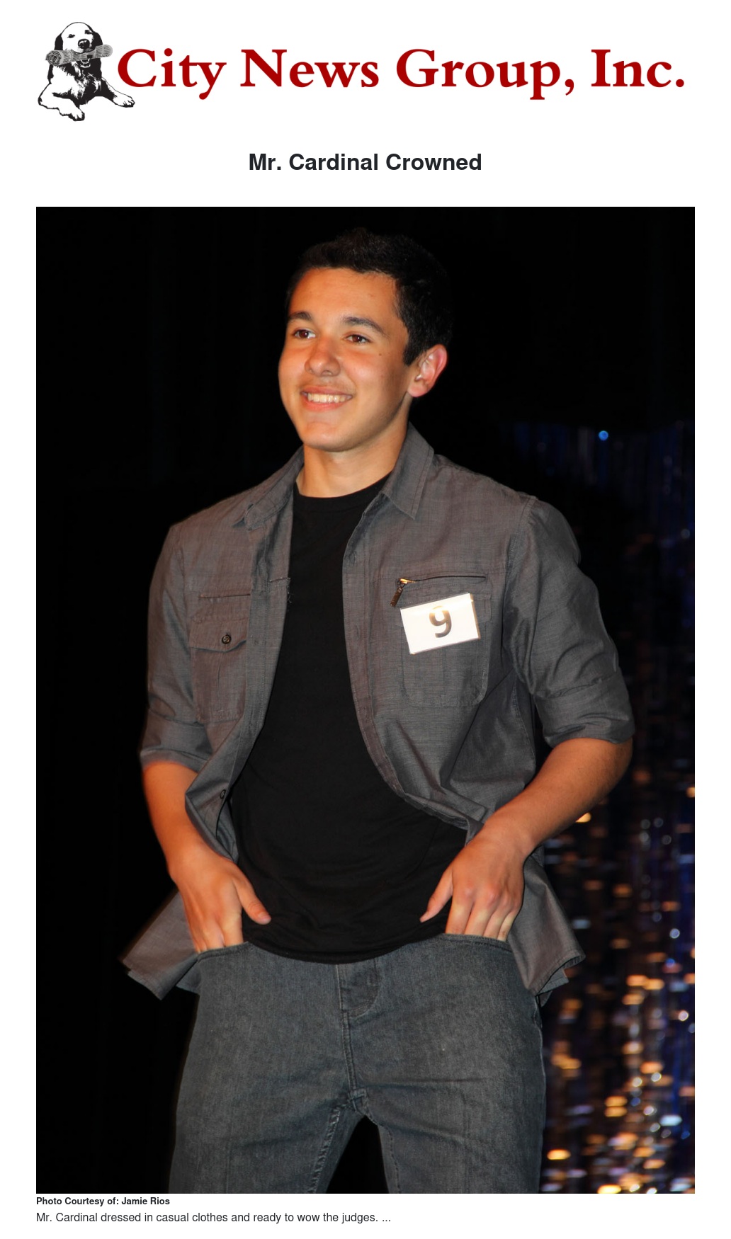 16-year-old, Samuel Moreno won this year’s Mr. Cardinal Contest and said, “I learned a lot. I learned not to take things for granted because you might not always have it”. In the last round, Moreno won by one point. He was tied with this best friend, Rosalio Cruz, and if there comes a time when Moreno cannot fulfill his responsibility, Cruz will be there to take over.