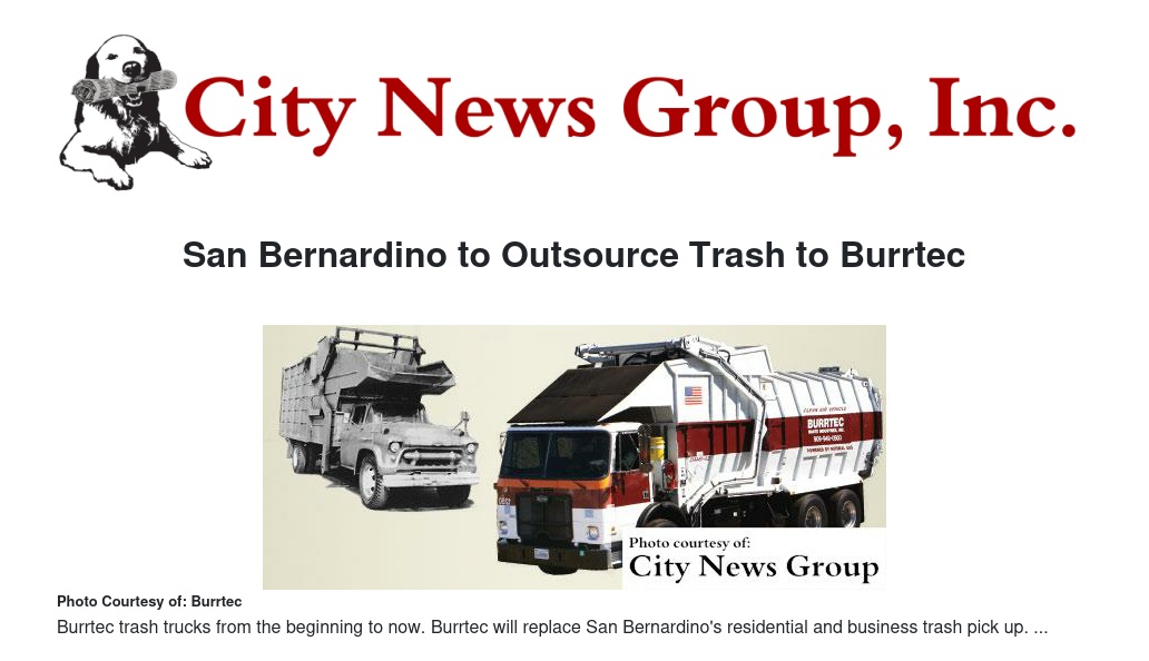“Other key factors that set Burrtec apart were proposed operational enhancements that could yield an estimated $10 million in cost savings and added revenue, the possible takeover of the City’s existing landfill at no added cost to the City, and the building of a BioCMG facility to recover and convert biogas into vehicle fuel for the Burrtec and City fleets and public vehicles.”