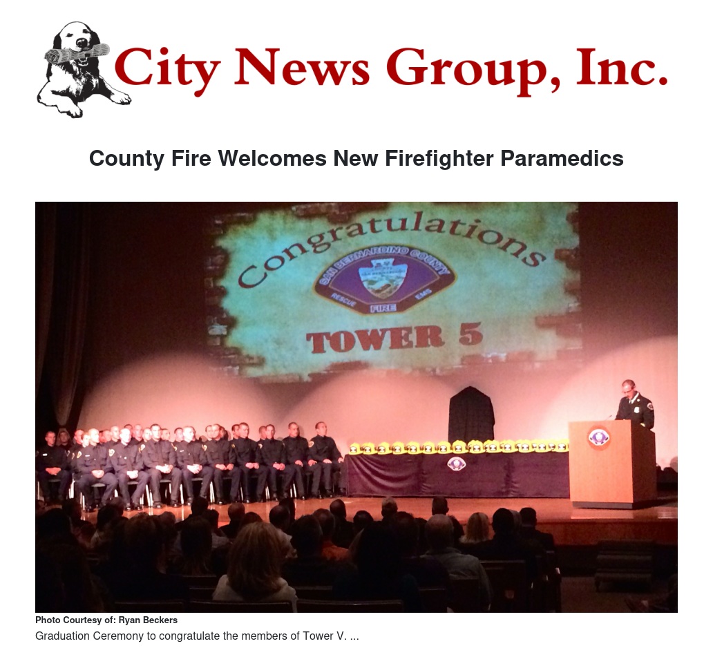 The proceedings began with a performance by the San Bernardino County Professional Firefighters Local 935 Pipes and Drums band. The recruits, comprising 27 males and one female, now begin a year-long probationary period as they fan out to station assignments throughout County Fire’s jurisdiction.