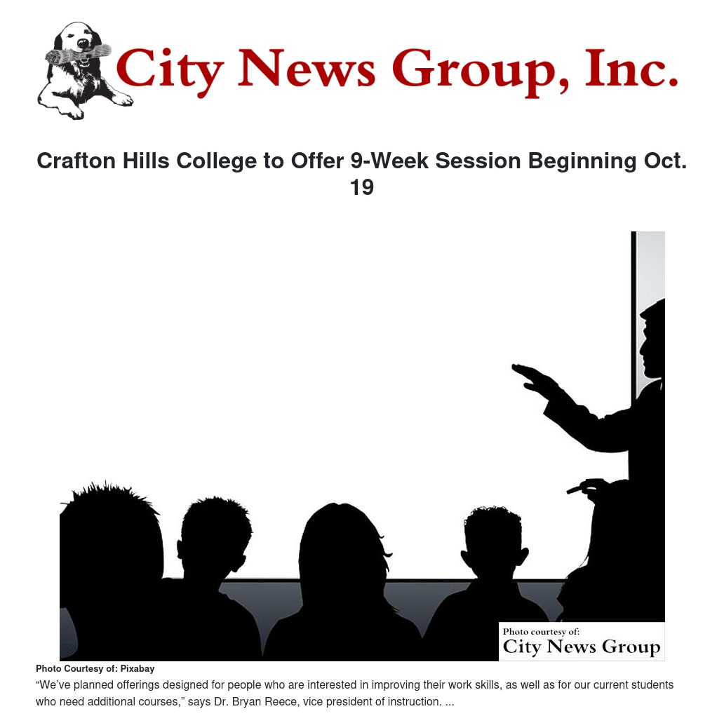 Crafton Hills College to Offer 9-Week Session Beginning Oct. 19