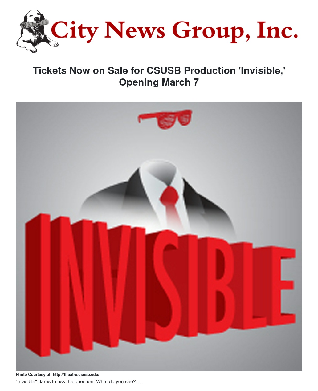 Tickets Now on Sale for CSUSB Production 'Invisible,' Opening March 7