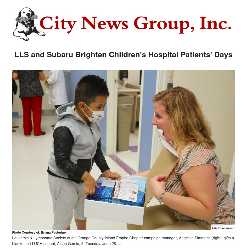 The blanket donation is part of the LLS of Orange County Inland Empire Chapter and Subaru of San Bernardino’s participation in the national Subaru Loves Promise Campaign. Through the campaign, LLS and Subaru intend to spread hope, love and warmth to cancer patients through small gestures by donating over 30,000 blankets across the country.