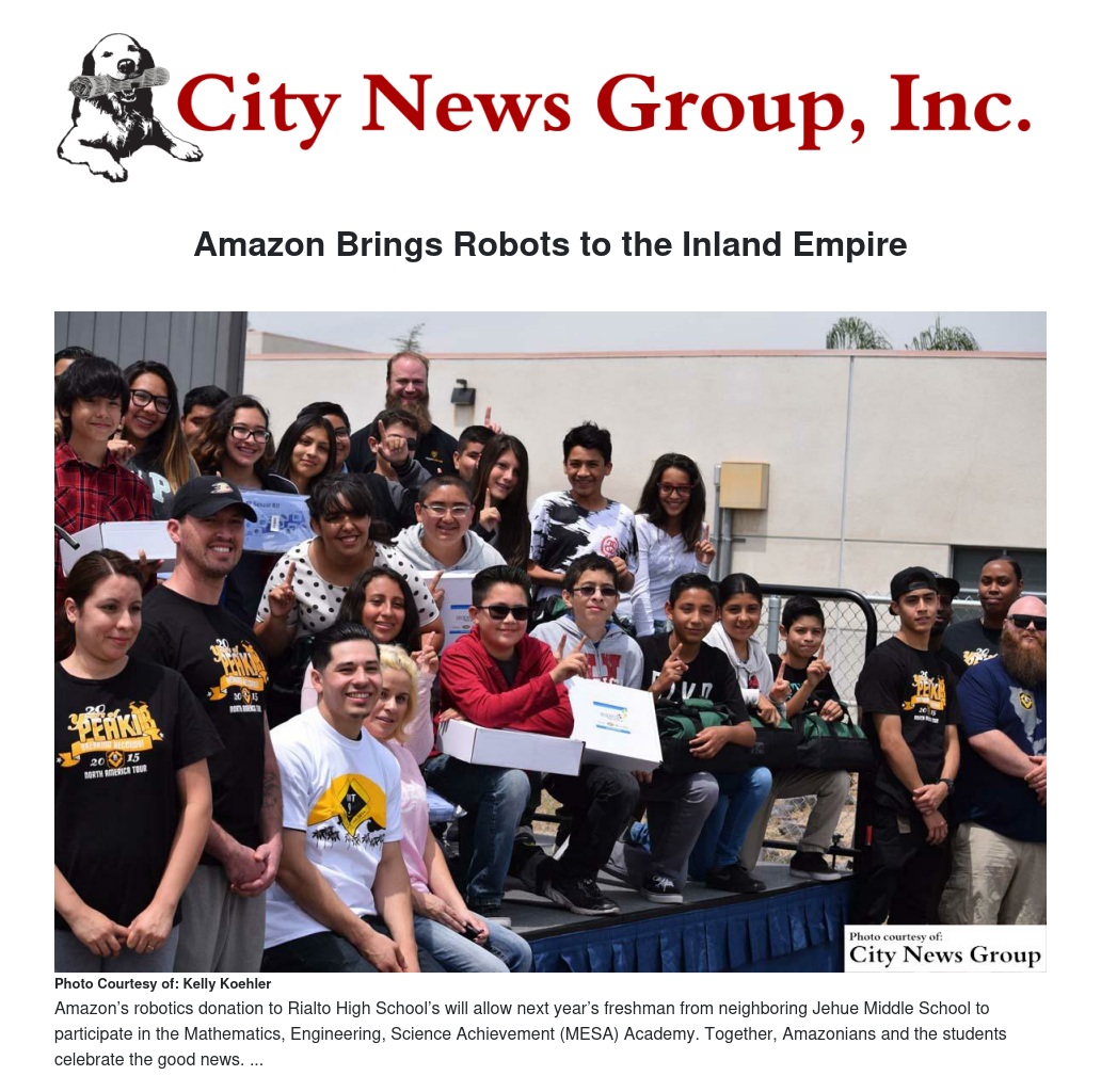 Amazon donated twenty robotics learning kits to the MESA Academy program at Rialto High School this past Tuesday, April 26.