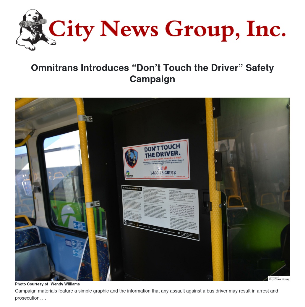 Omnitrans Introduces “Don’t Touch the Driver” Safety Campaign
