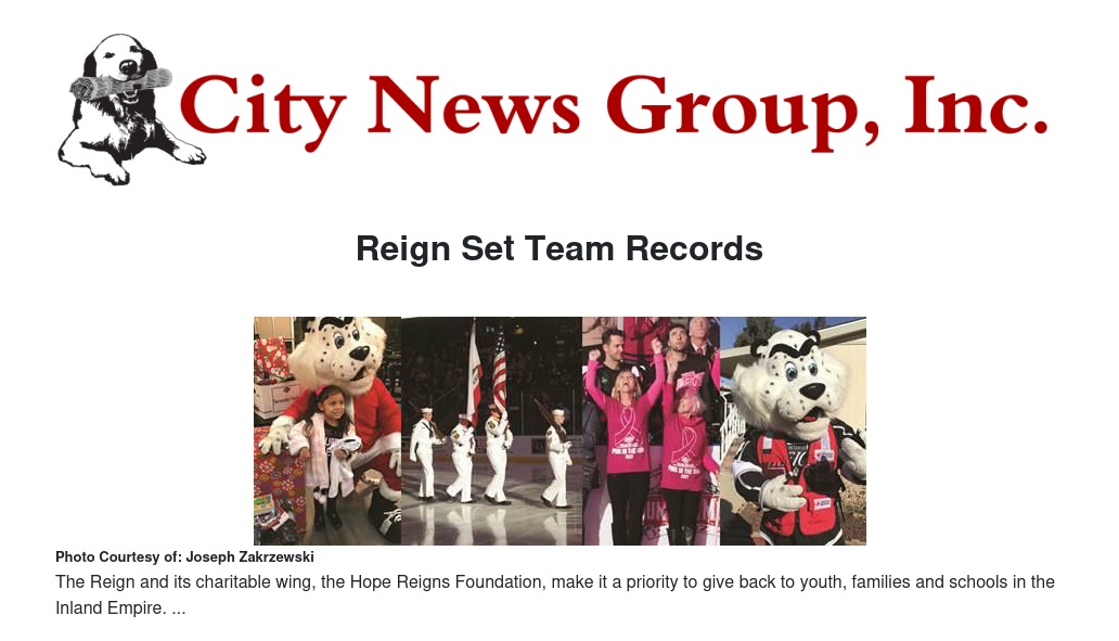 In the community, the Reign staff and players registered over 1,000 volunteer hours including visits to the Loma Linda University Children’s Hospital, Danbury School, Inland Empire Ronald McDonald House, American Red Cross, Alcott Elementary and also hosted multiple book and food drives during the season. The Reign staff and players also participated in the annual Hope Reigns Foundation Golf Tournament, the Reign Gala Benefiting the Be Perfect Foundation, Holiday Adopt-A-Family, Ontario Reign Great Strides 5K Run and Walk and Temecula Valley Inline Hockey Association coaching clinics.