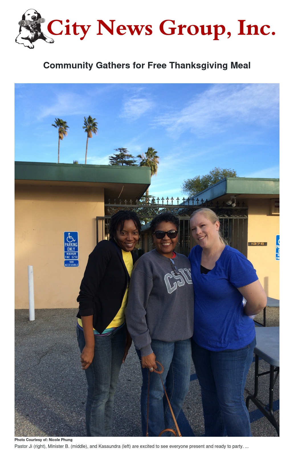 On Nov. 23, Dwelling Place in San Bernardino hosted a free Thanksgiving dinner for the community. The party began at 3 p.m. in Dwelling Place’s parking lot where families were welcomed with songs sung by a small group of teens and adults. As the performers sang, the children had an opportunity to play in the inflatable jumpers while parents enjoyed the music.