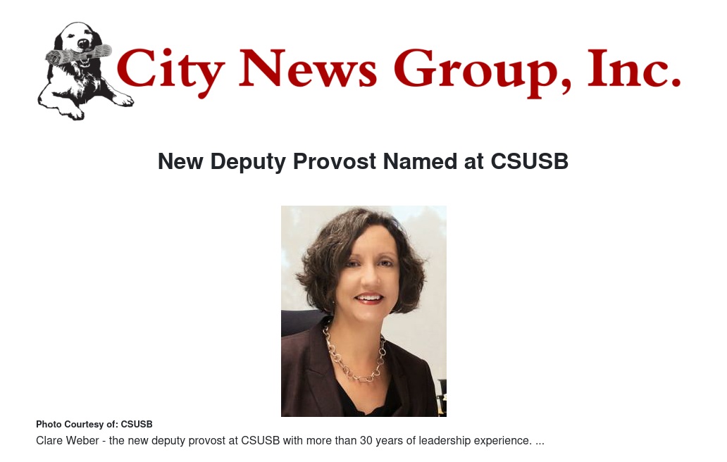 SAN BERNARDINO >> Clare Weber, who has more than 30 years' leadership experience in higher education and the private sector, has been appointed to the newly created position of deputy provost at Cal State San Bernardino.