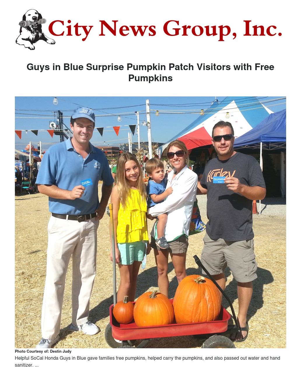 The Helpful Honda Guys in Blue didn’t bring tricks, just a treat for local families on Sunday, Oct. 20: free pumpkins.