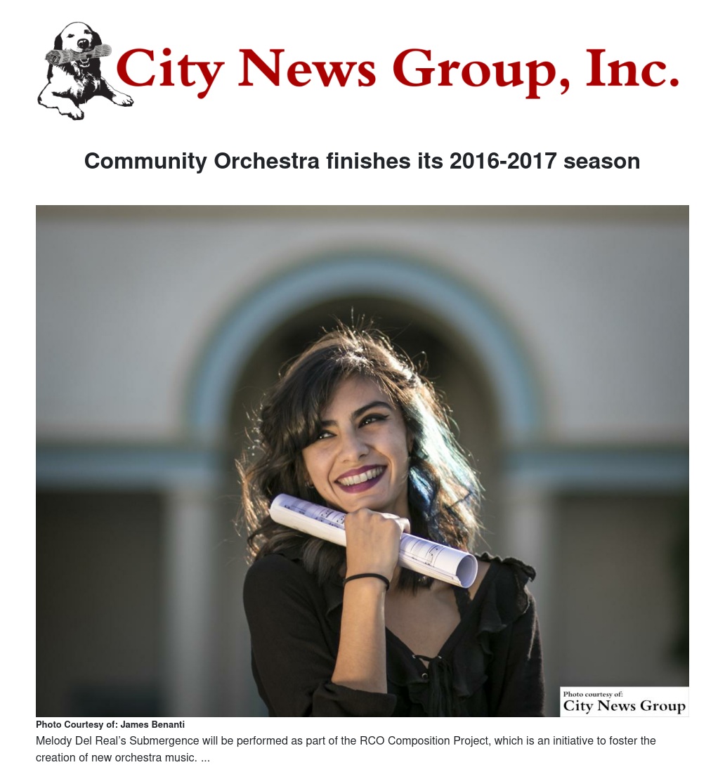 REDLANDS>>  On May 21, the Redlands Community Orchestra finishes its 2016-2017 season with a concert at 3:00 p.m. at Redlands High School’s Clock Auditorium. The orchestra will present a new piece called, "Submergence", by Cal State San Bernardino student Melody Del Real. The performance will also include Schubert’s Symphony No. 8 in B Minor “Unfinished” and Rossini’s overture to The Barber of Seville. The concert will be conducted by James Benanti and is free of charge and family friendly. No tickets are necessary. Approximately 60 all-volunteer musicians of all ages will play string, woodwind, brass, and percussion instruments in the concert.