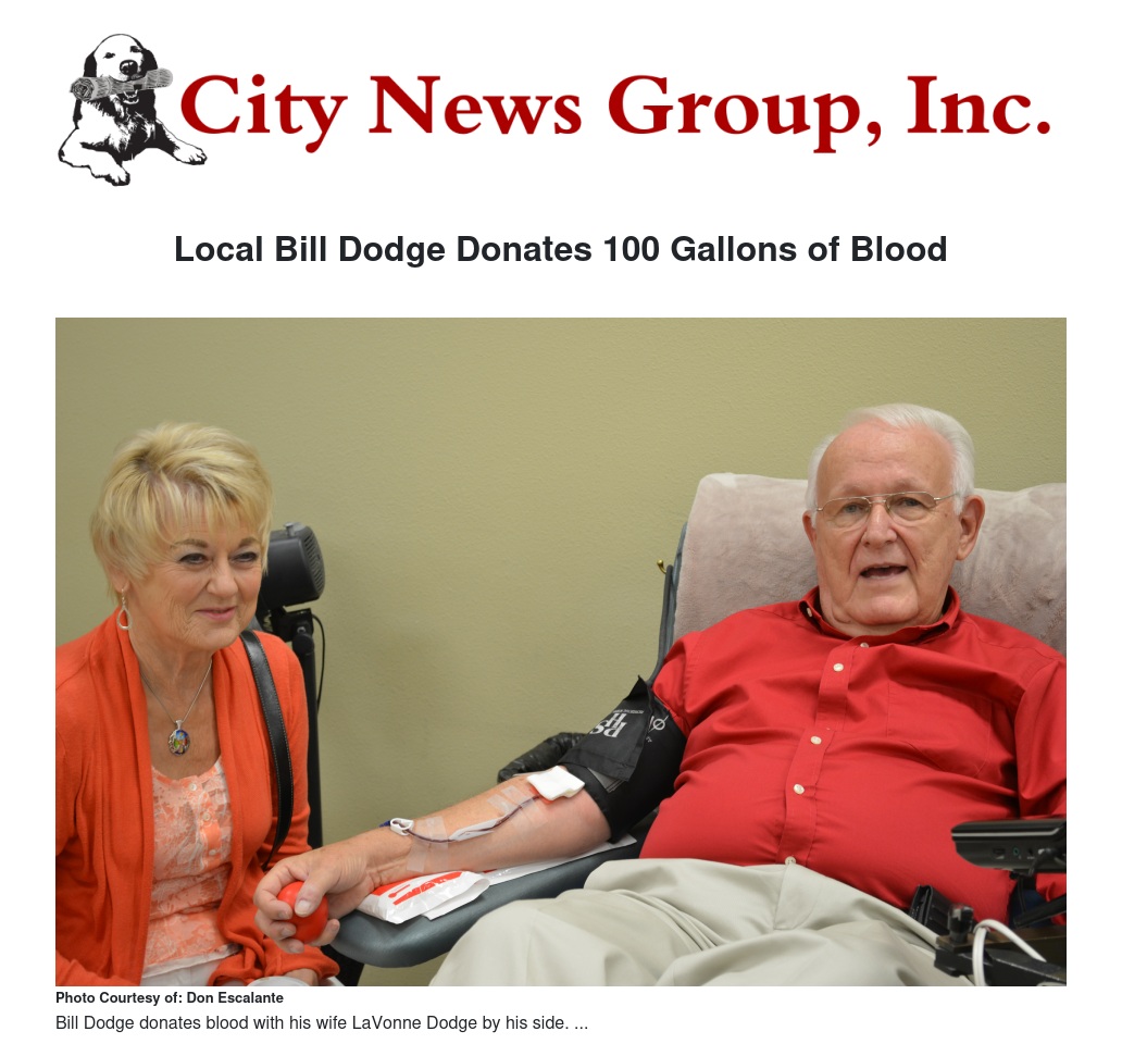 Local Bill Dodge Donates 100 Gallons of Blood