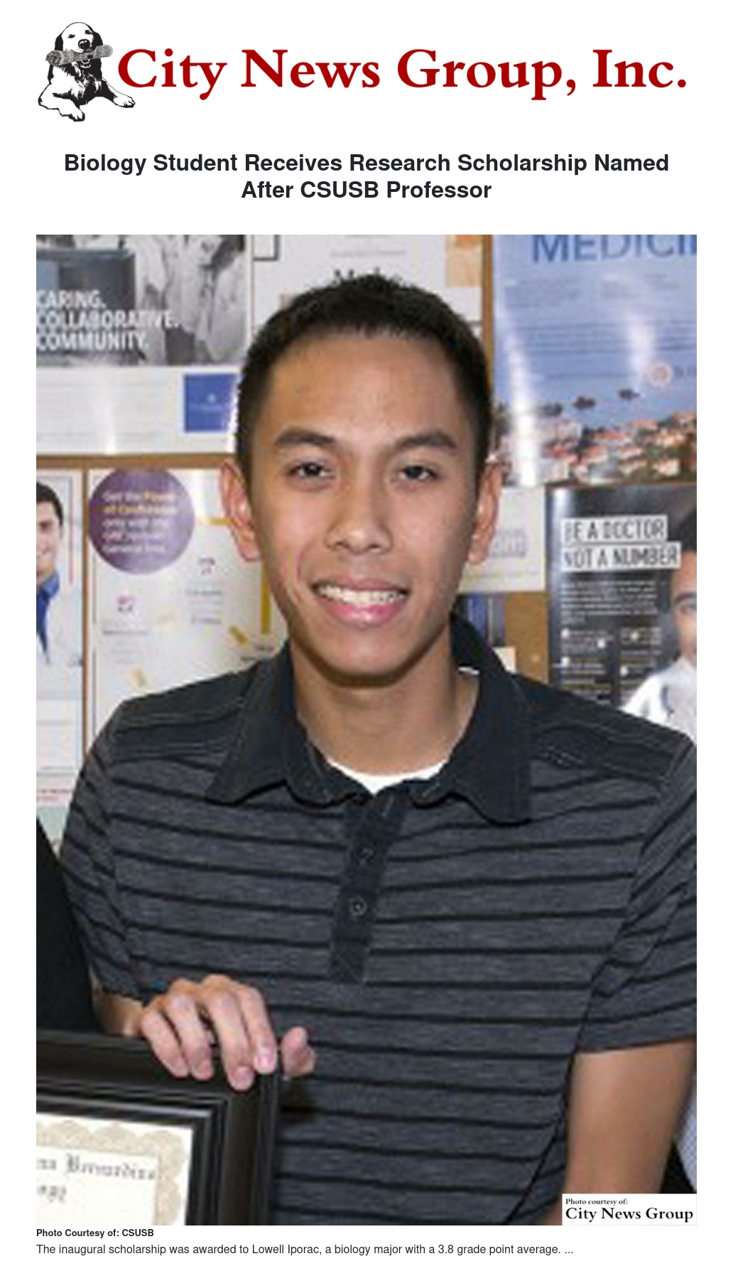 “The scholarship was created to help meet the cost of education for CSUSB biology students who have demonstrated a commitment to biological research,” said Mike Chao, the chair and professor in the CSUSB biology department.