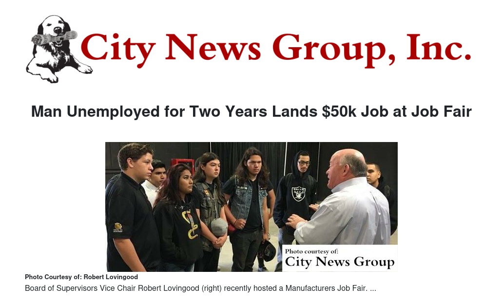 SAN BERNARDINO>> A man who has been out of work for two years landed a job at a recent Manufacturers Job Fair hosted by Board of Supervisors Vice Chair Robert Lovingood.