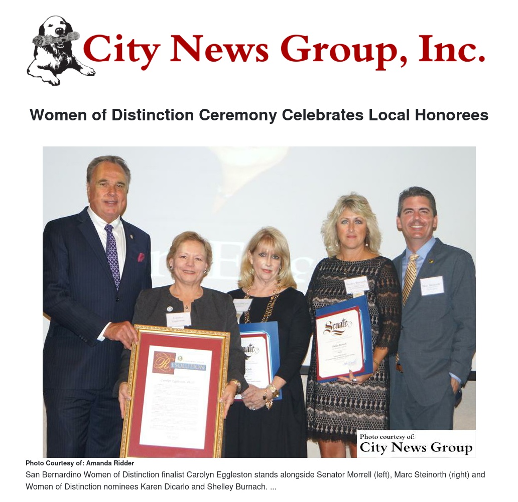 Forty-four Inland Empire women from the 23rd State Senate District were honored for their community work and service by state Sen. Mike Morrell, R-Rancho Cucamonga, in the 11th Annual Women of Distinction Ceremony and Dinner held Oct. 16 in the Orton Center at the University of Redlands.