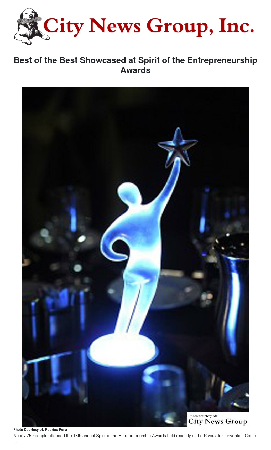 Nearly 750 people attended the 13th annual Spirit of the Entrepreneurship Awards held recently at the Riverside Convention Center.
