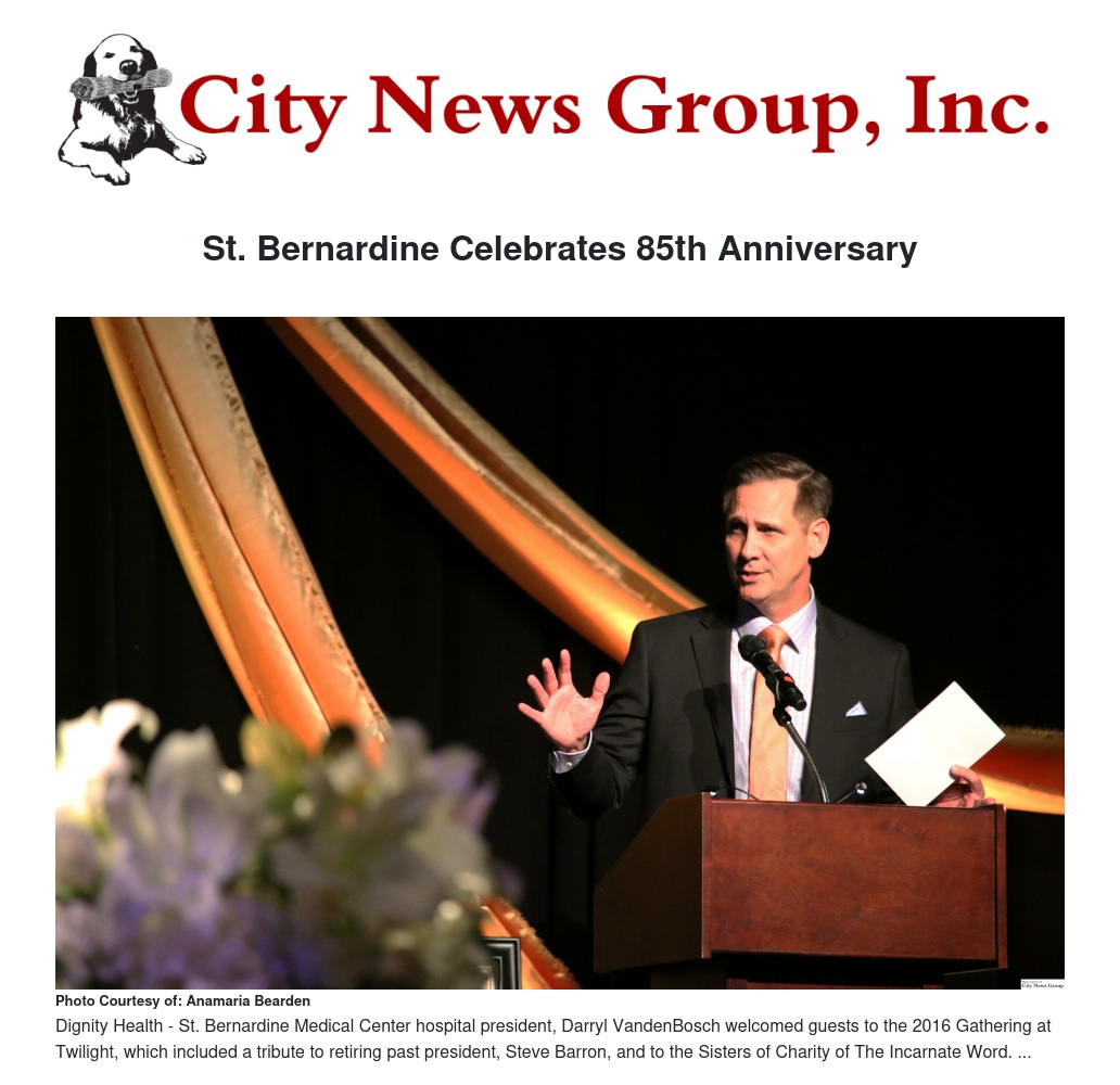 “On the 85th anniversary of our hospital’s founding, it was a privilege to formally honor the Sisters of Charity, to whom our community owes a debt of gratitude,” said Dan Murphy, vice president of Philanthropy, Dignity Health, Inland Empire. “It is through their vision and inspiration that St. Bernardine has become one of the leading health care providers in the Inland Empire.”
