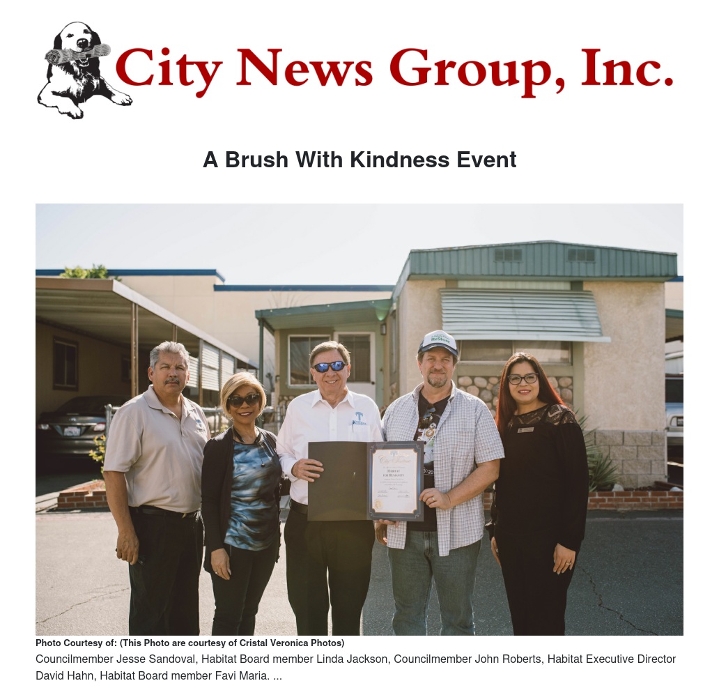 They were joined by Fontana City Councilmembers Jesse Sandoval and John Roberts, as well as Fontana Unified School District Board President Mary Sandoval.  Councilmembers Sandoval and Roberts presented Habitat For Humanity with a certificate of recognition, expressing the City’s gratitude for their contributions to the community.  Also present for the event were Habitat Board Members Linda Jackson and Favi Maria.