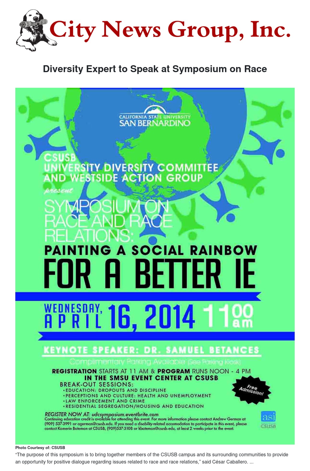 Cal State San Bernardino will co-host an inaugural symposium on race and race relations on Wednesday, April 16th, at the university’s Santos Manuel Student Union Events Center.